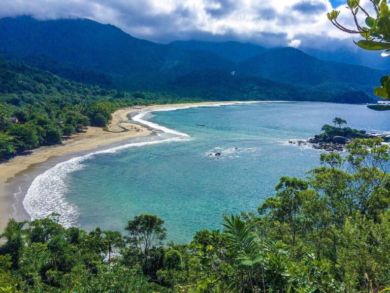 O litoral norte de São Paulo tem praias de areia grossa e águas transparentes, ladeadas pela exuberante Mata Atlântica