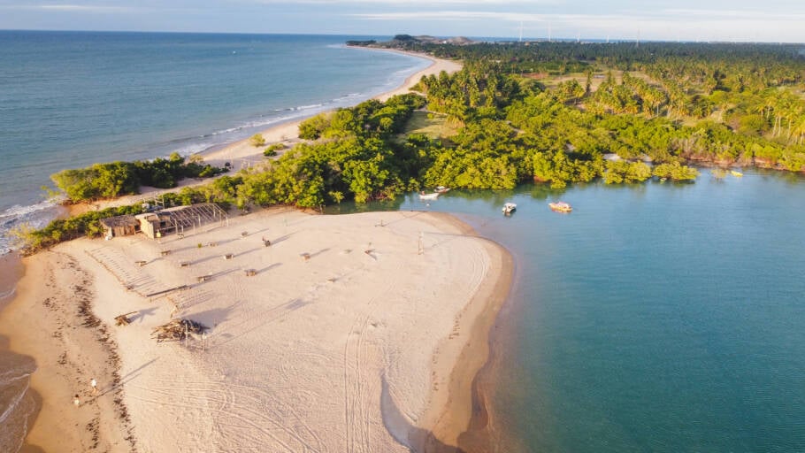 O passeio até a Vila de Moitas oferece uma imersão no litoral cearense, com trajeto inicial pela praia de Moitas e uma breve parada no mirante. A partir dali, segue-se até o encontro do mar com o Rio Aracatiaçu.