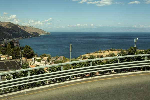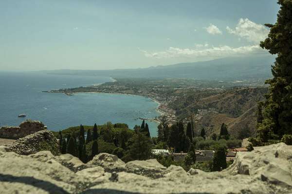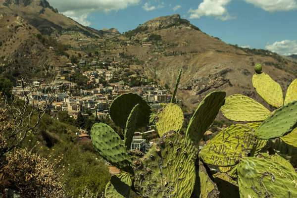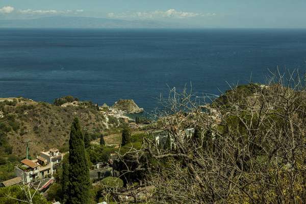 A vista de Castemolla (o vilarejo no alto do morro) é privilegiada: é possível avistar Taormina, o litoral da Calábria e o vulcão Etna.