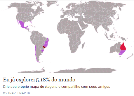Basta entrar no My Travel Map e marcar no mapa todos os lugares que já esteve. Ao finalizar, o usuário obtém percentual de quantos países já visitou. Ainda é possível compartilhar com os amigos.