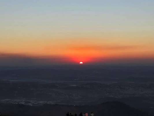No final da tarde subimos (de carro) até os 1450 metros de altitude da Pedra Grande de onde pudemos apreciar um maravilhoso pôr do sol.