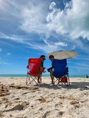 O casal Eduardo e Gustavo está viajando pelas praias da Flórida até a costa do golfo do México