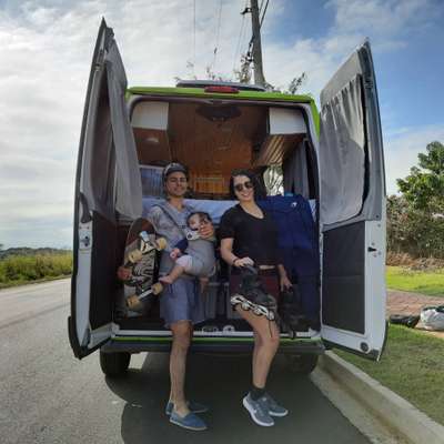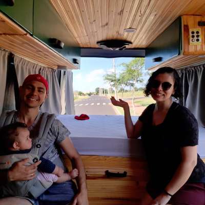 A pandemia e o nascimento da pequena Tainá fizeram o casal de de São Carlos (SP) adiar os planos, mas não desistirem. Neste período, eles compraram uma van e a transformaram num motorhome.