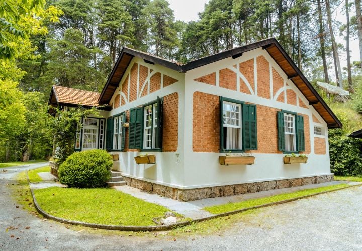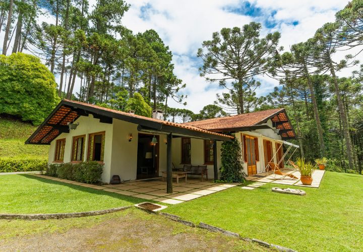 Para quem quer transformar o passeio em uma verdadeira imersão na natureza, o Parque Bambuí oferece opções de hospedagem dentro da própria área verde. São casas de campo charmosas e completas, ideais para famílias ou grupos de amigos que buscam conforto, privacidade e contato direto com a paisagem da Serra da Mantiqueira.