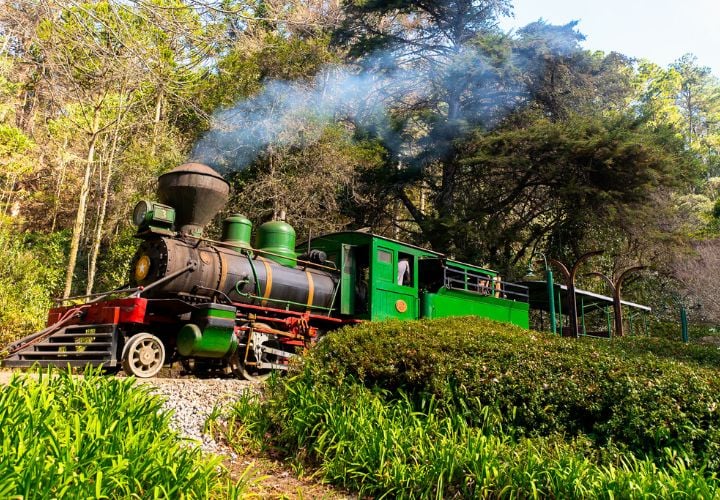 No coração do parque, uma locomotiva a vapor fabricada em 1920 rouba a cena. Carinhosamente chamada de Maria-Fumaça, ela oferece um passeio breve, mas cheio de nostalgia —uma volta entre trilhos, lagos e bosque, que emociona crianças e adultos. O trajeto dura cerca de 10 minutos e custa R$ 25.