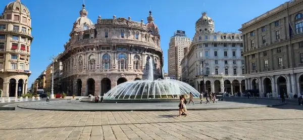 Da Via Garibaldi seguimos para a Piazza Fontane Marose, que fica a poucos metros de caminhada. Dá lá retornamos ao navio.
