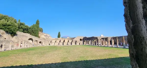 O sítio arqueológico é imenso e impressionante. São diversas construções com boa parte das paredes ainda preservadas que encontradas nas escavações a partir do século 18, como o fórum, termas, teatro, tavernas e até mesmo um bordel.