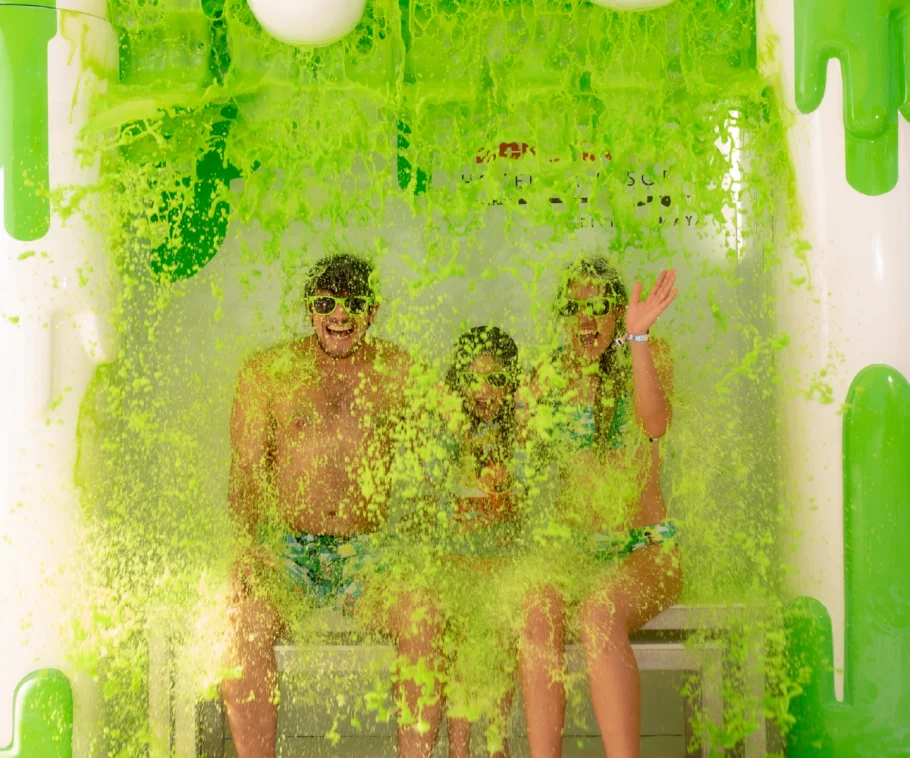 Um dos eventos mais conhecidos do Aqua Nick é o banho de slime, chamado de Super Sliming. Em horários determinados, visitantes se reúnem em uma área específica do parque para participar da atividade, que inclui música, animação e a tradicional “chuva” do slime verde —marca registrada da Nickelodeon. A ação costuma atrair principalmente crianças e adolescentes, mas também envolve adultos que acompanham a programação.