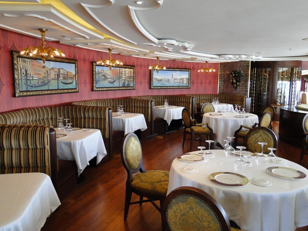 Outro ponto alto do cruzeiro é a gastronomia. Os navios contam com três diferentes restaurantes rotativos, onde os passageiros podem jantar cada noite num restaurante diferente e temático. Além disso, existem outros restaurantes e lanchonetes pelo navio e ainda mais dois restaurantes exclusivos para adultos.