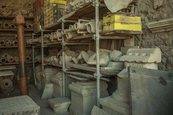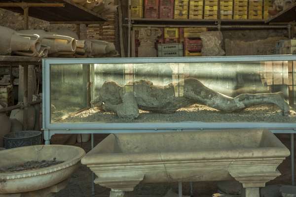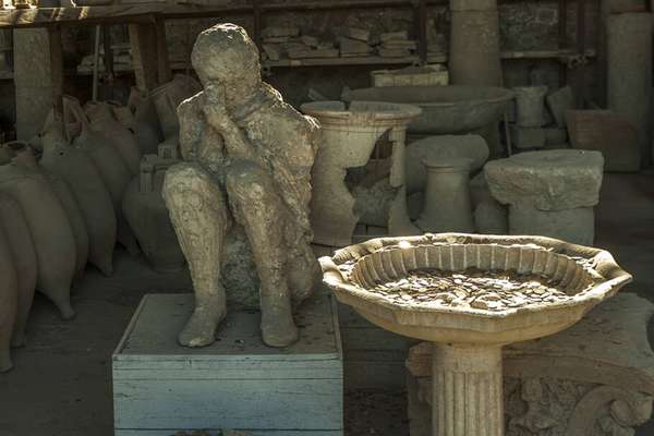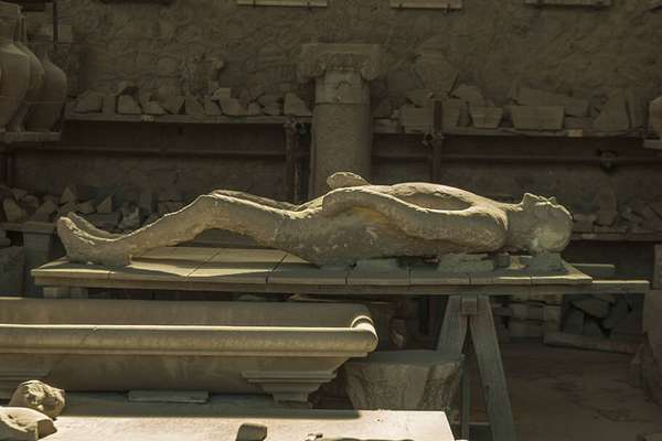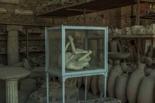 Posteriormente durante as obras de escavação de um canal para desvio rio Sarno, partes das ruínas foram descobertas.Sendo que em 1860, espaços vagos foram vistos nas camadas de cinza, que continham restos humanos. Para recriar a forma das vítimas no momento em que morreram, foi desenvolvida a técnica de injetar gesso nesses espaços. A mesma técnica é utilizada até os dias atuais.