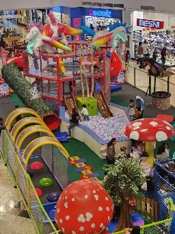 Crianças de 1 a 12 anos podem se divertir em uma super torre, carrossel de unicórnios, escorregadores, pântano e cascata de bolinhas, área baby e bazooka com alvos luminosos. Os ingressos custam R$ 50,00 por 30 minutos ou 65 reais por 1 hora. O minuto adicional custa R$ 1,00.