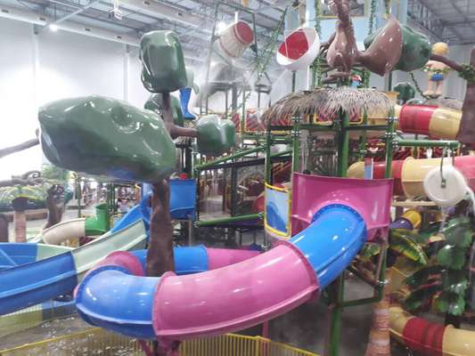 O Tauá Aquapark tem ambiente climatizado e toboáguas