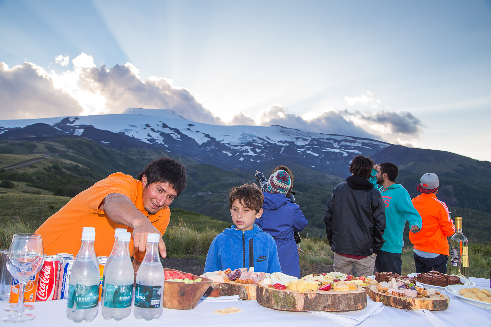 Um veículo 4×4 busca os hóspedes no final da madrugada e os levam até um mirante localizado aos pés do vulcão Mocho-Choshuenco.