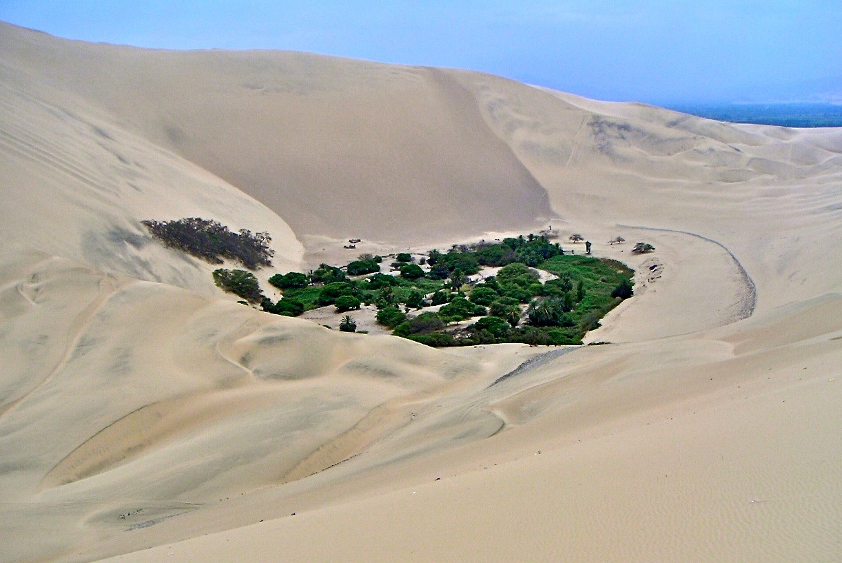 Localizada a 5 km de Ica, no centro-sul daquele país andino, a Laguna de Huacachina, conhecida como ‘o oásis da América’, se formou a partir de correntes subterrâneas que alimentam aquela piscina com águas verde-esmeralda, em pleno deserto.