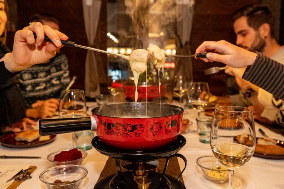 Para a experiência clássica, a cidade oferece opções que vão do fondue servido em um cruzeiro pelo Lago de Zurique ao inusitado Fondue Tram, além de restaurantes como o Winterstube, que aposta em um clima intimista e aquecido por braseiros durante as noites geladas.