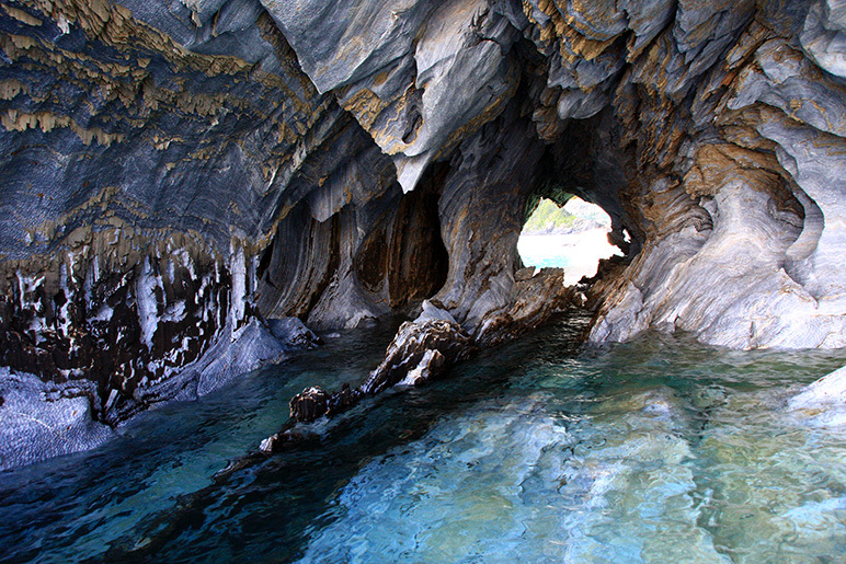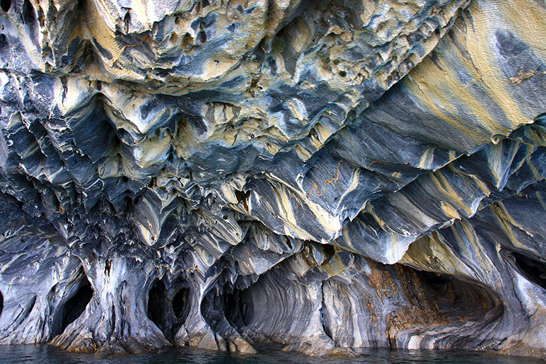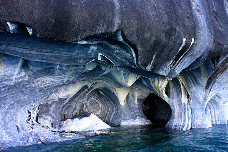 Esculpida durante milhões de anos pela água e pelo vento, a Catedral de Mármore, no Lago General Carrera, na Patagônia chilena, é uma inigualável obra de arte, rara união de grafismos, texturas, formas, e cores. E, mais o som da água batendo nas rochas embala a visão. Os furos e labirintos em seu interior fazem o local ainda mais belo e misterioso. Em dias de luz excepcional e com as águas muito tranquilas, pode-se ver ainda as diferentes formações submersas. Arrebata. Diante daquele mármore, penso que o genial Michelangelo surtaria.