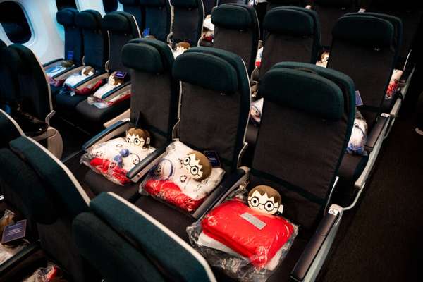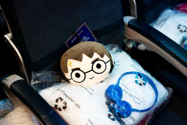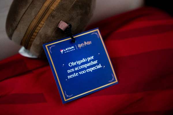 A ambientação não se restringiu à fuselagem do avião. Os passageiros receberam uma almofada multifuncional com a imagem de Harry Potter, que se transformava em máscara de dormir e travesseiro. Na parte gastronômica, a Latam incorporou snacks inspirados no universo da saga, incluindo cupcakes especialmente desenvolvidos para a ocasião, representando as quatro casas de Hogwarts.