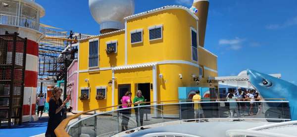 É ali que fica o Doremiland, o maior espaço infantil da frota MSC, com sete salas temáticas e programação desenvolvida em parceria com marcas como LEGO e Chicco. Outro destaque para as crianças é o toboágua infantil em formato de farol da Ocean Cay.