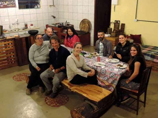 De volta ao camping, banho tomado, vamos as delicias de um jantar servido no forno a lenha!