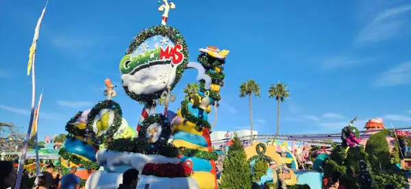 A programação, que começou no dia 22 de novembro e vai até 31 de dezembro em noites selecionadas, combina parada, shows de luzes, interações com personagens e até café da manhã com Grinch, além de comida e guloseimas temáticas.