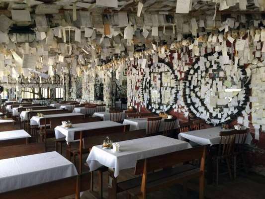 Nós do Viva o Brasil achamos bastante peculiar existir um bar com tantos recados e bilhetes, olhar as paredes repletas e papel e ficar um bom tempo lendo eles foi uma experiência bem inusitada e que gostamos bastante. Procurar bilhetes de terras distantes é um bom passatempo lá no Bar do Arante.