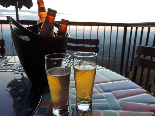 Montamos acampamento e fomos ao Topo do Mundo que fica a cerca de 6km da Pousada e tem esse nome devido aos seus 1450 metros de altitude, bem no alto da Serra da Moeda. Curtimos o pôr do sol acompanhado de um jantar espetacular no Restaurante Topo do Mundo.
