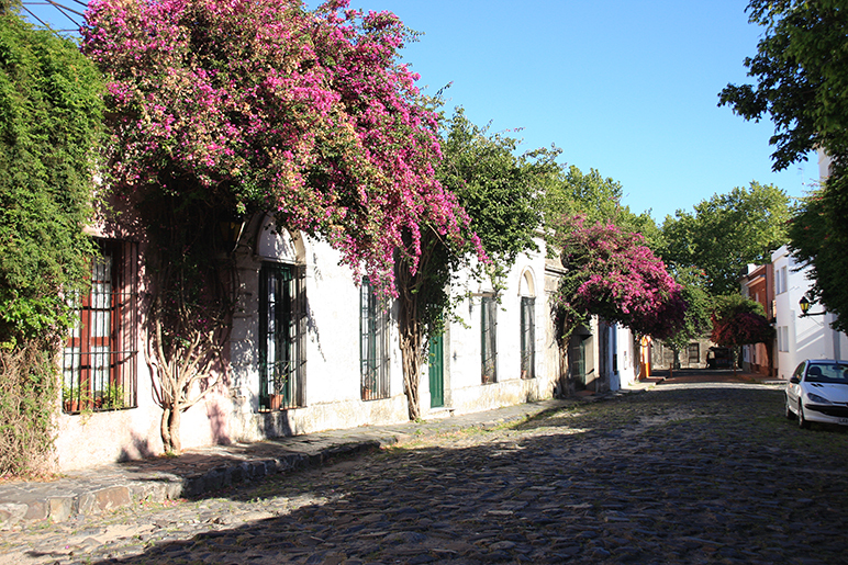 A partir das ruínas do antigo forte, chega-se ao coração histórico dessa graciosa vila com apenas vinte quadras. Uma das mais bonitas é a Calle de los Suspiros, que fica de frente para o rio e foi toda pavimentada por escravos. Nas outras ruas as casonas coloniais têm buganvílias floridas na fachada e se transformaram em galerias de arte, cafés, lojas de artesanato, hotéis e restaurantes a maioria com mesas nas calçadas sobre guarda-sóis. Nas mesas reina a carne na brasa, os embutidos, os renomados vinhos uruguaios e os queijos artesanais.