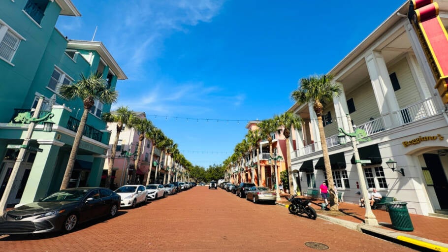 Para o melhor final de tarde em Kissimmee, com direito a música ao vivo e restaurantes lindos, vá ao Promenade Sunset Walk.