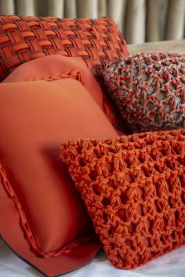 “Com inspiração na alma brasileira e valorizando o design nacional, elas desenvolveram variadas peças e objetos – como almofadas, pufes, mantas e cestos, por exemplo – que se harmonizam em tramas de crochê e macramê com texturas do couro e da corda náutica e uma paleta de cores que recorre ao azul-céu, coral, bege e verde- musgo para imprimir uma nova atmosfera aos bangalôs Master, Estrela, Trancoso e Costa”, adianta a proprietária e diretora comercial da pousada, Evelyn Gavioli.