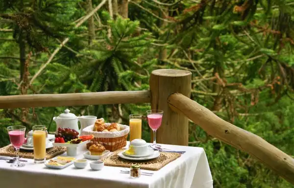 Outro diferencial é o café da manhã, entregue no chalé em horário escolhido pelo hóspede. Ele é personalizado, preparado e servido pelos proprietários, e conta com uma grande variedade de itens artesanais e orgânicos, a maioria de produtores locais, podendo ser também apreciado na varanda, onde os únicos sons ouvidos são dos pássaros e do ribeirão que corta a propriedade de 26 mil m².