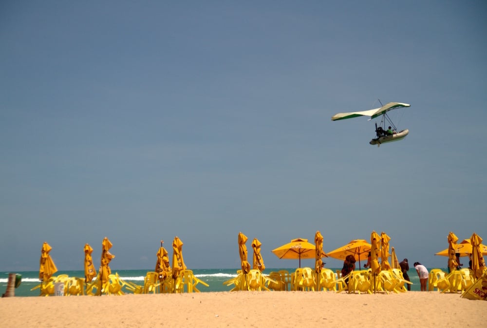 Naquelas disputadas faixas de areia, no litoral sul de Alagoas, tem barco que voa, banhistas que flutuam sobre a água, bugues que riscam falésias coloridas que se lançam sobre o mar e tem até parapente que vira paramotor.