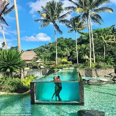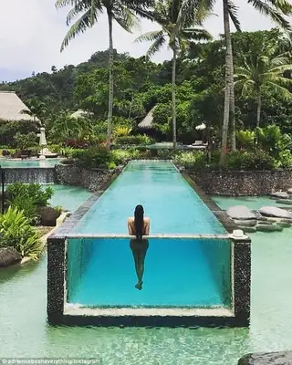 Entre suas aventuras neste refúgio tropical, muitos hóspedes estão dedicando seu tempo para posar para um “belfie” contra o vidro da icônica piscina de borda infinita.