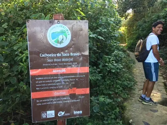 O caminho não é sinalizado, as outras duas pessoas que encontramos por lá se perderam. Então acho que vale pagar o guia. Até por que são eles que cuidam do local. São altos e baixo, um sobe e desce no meio da mata. Passamos por riachinhos sendo guiados pelo Cy, um caiçara super gente fina que foi contando as histórias do local e explicando sobre os animais e árvores da região. Ele cobrou R$ 150 pelo grupo. Os preços também variam muito, o esquema é combinar antes.