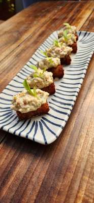 Outro prato é o Catado de Siri, uma porção de pastéis do pequeno crustáceo, além de outros petiscos de frutos-do-mar e tira-gostos, tudo preparado em forno a lenha.