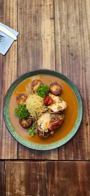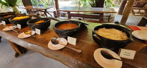 Por influência do uruguaio José, que é casado com uma baiana, a gastronomia mescla as duas tradições: a Parrillada, tradicional churrasco no estilo uruguaio, que é acompanhado por delícias da culinária brasileira. O almoço é self-service (por quilo) e pago a parte.